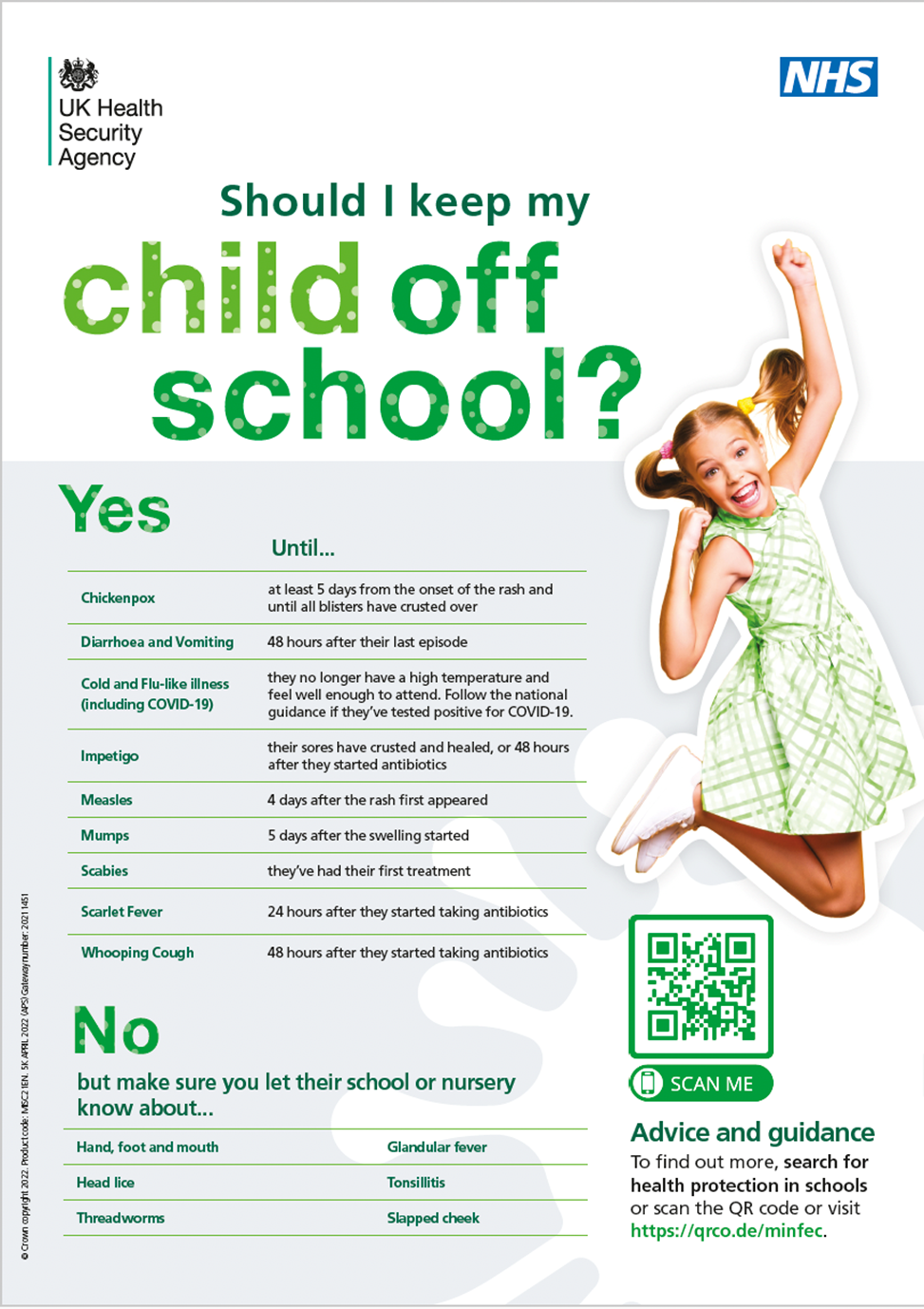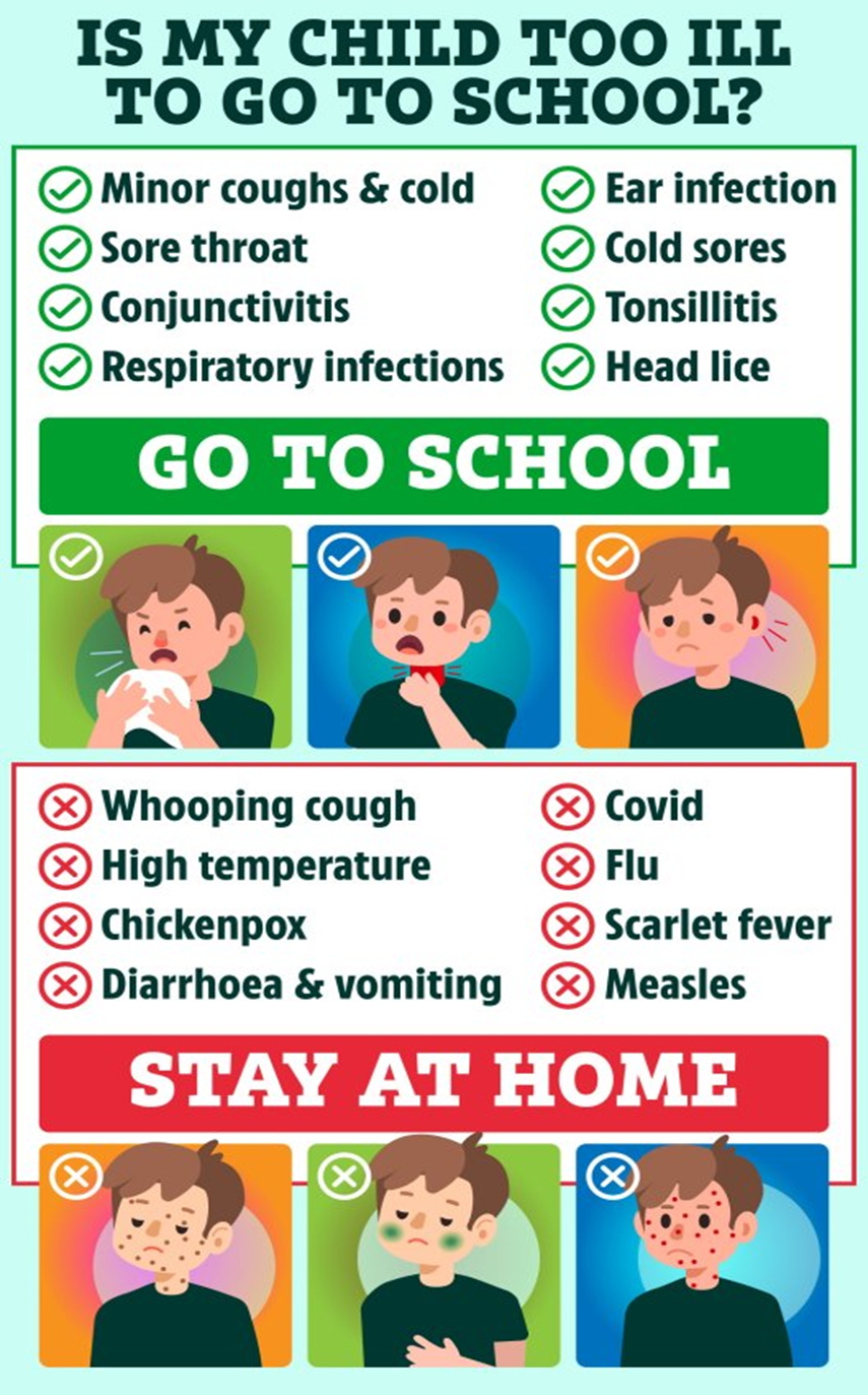 At Netherton Moss, high levels of attendance and good punctuality are amongst our most important priorities. Our target is for all children to reach 100% attendance annually. We recognise that this is a very challenging target and that sickness or illness can affect a child’s attendance, but every year we do have children who don't miss a minute of their time in school. While we understand that sometimes your child will need time off school, we can cope with coughs, colds and sneezes etc., so please send your child to school! We will ring you straight away if there is a problem. The NHS poster below contains some important advice about when and when not to send your child to school.